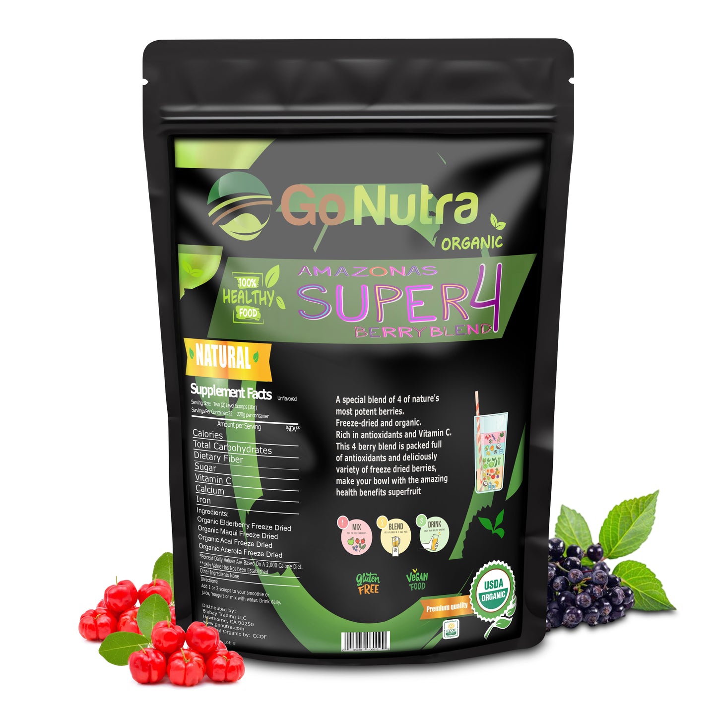 Go Nutra® Organic Acai Berry Blend for Bowls, With Acai, Maqui, Elderberry