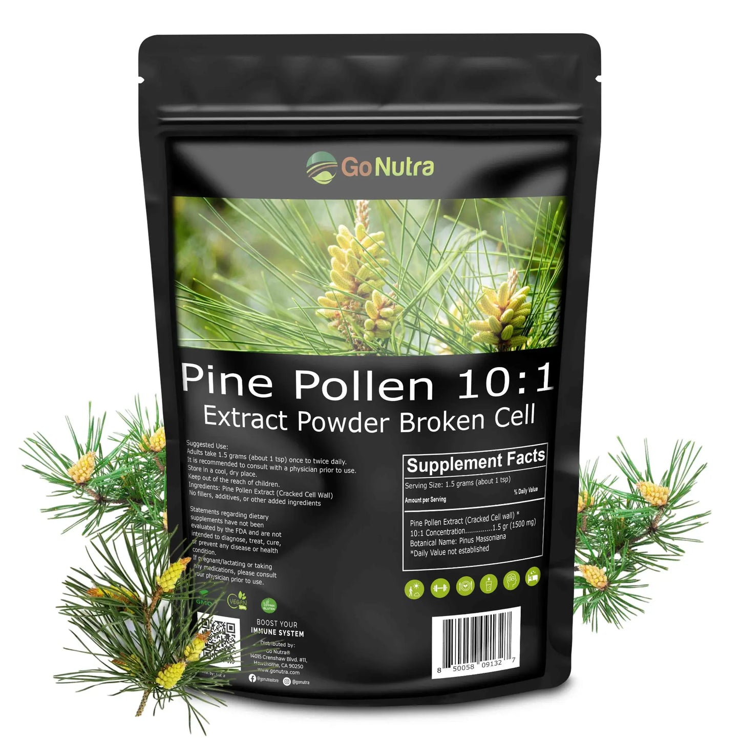 Go Nutra® Pine Pollen Powder, Wild Harvested & Broken Cell Wall, Non-GMO, No Added Ingredients