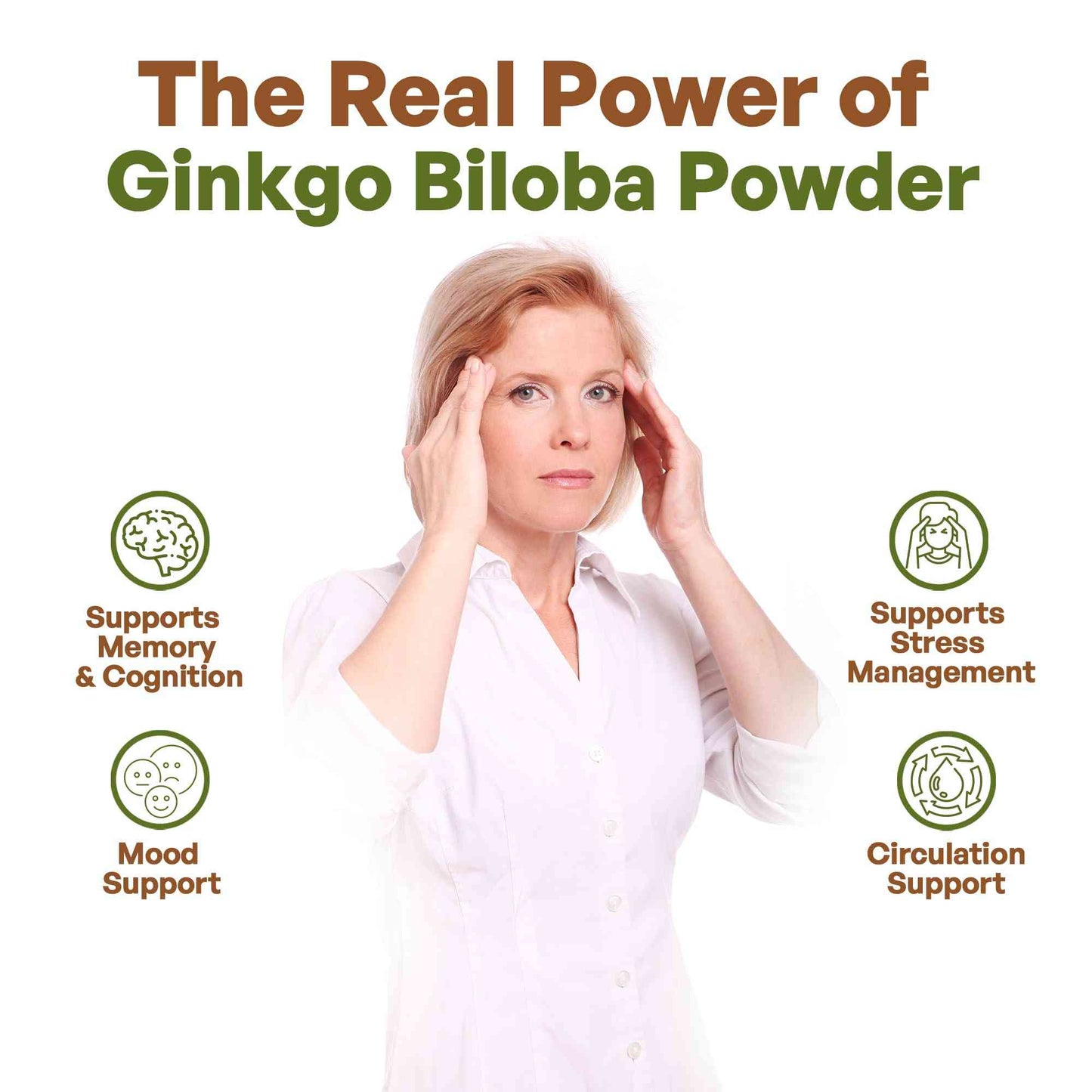 Ginkgo biloba, also known as the maidenhair tree, is one of the oldest living tree species in the world. It is native to China, where its seeds have been used for centuries in traditional Chinese medicine to support cognitive health. The powder extract is made from the dried ground leaves of the Ginkgo Biloba tree. Ginkgo Biloba leaves are a rich source of flavonoids and terpenoids with potent antioxidant activity. Ginkgo Biloba is most commonly taken to support cognitive/brain health, support a healthy mood, support the body's response to stress, for antioxidant support, and for overall wellness & longevity. Go Nutra's Ginkgo Biloba supplement is a pure organic powder with no added fillers, carriers or preservatives. You can add a serving to your daily smoothies, teas, or juices, or simply mix with water or fill your own capsules if you prefer.